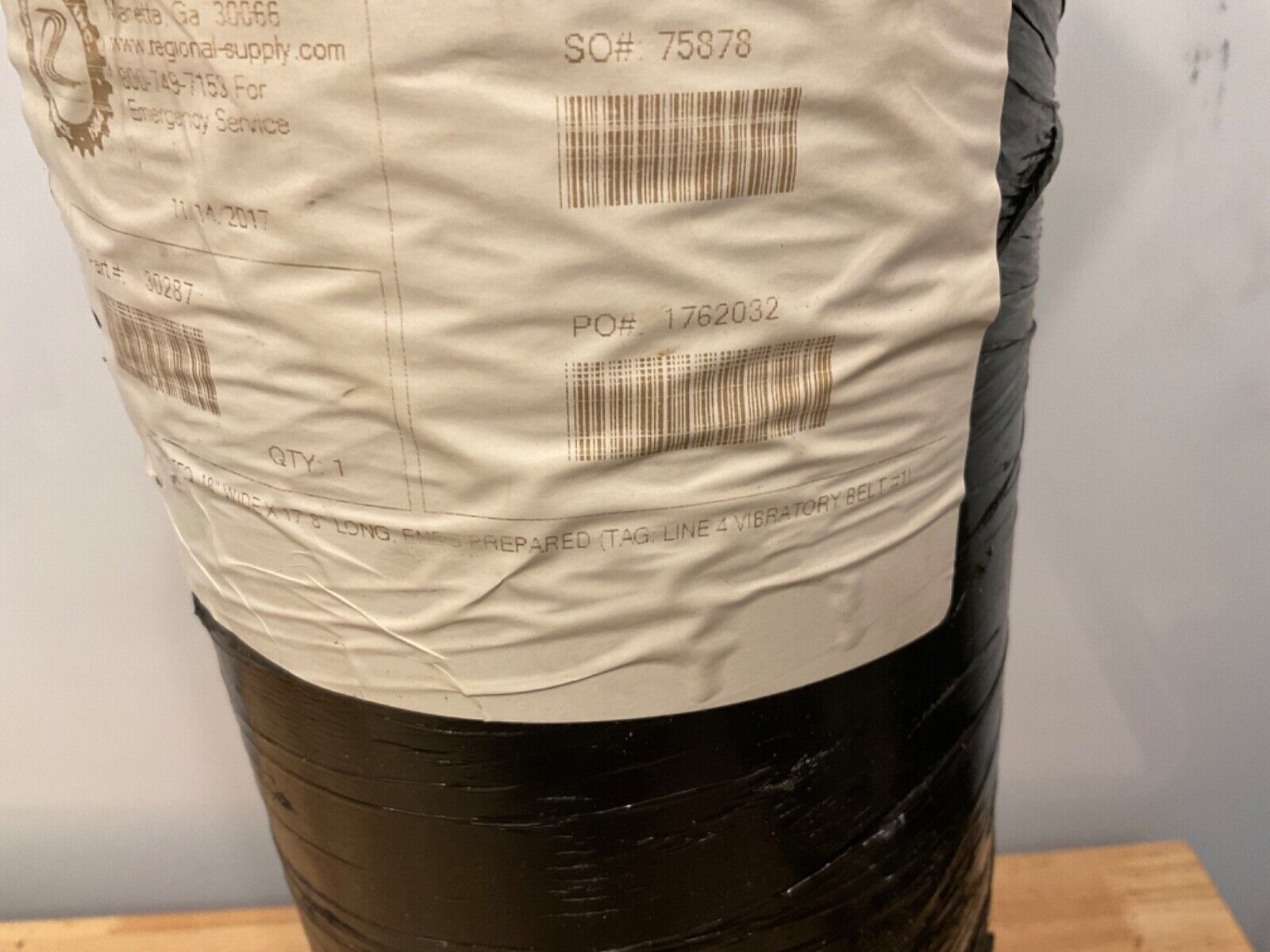 This listing is for a 17’8”x 18” FMB-5EQ Regional Supply Inc Conveyor Belt Food Grade White 2 Ply. One roll with prepared ends, may not include welding or splicing material.
