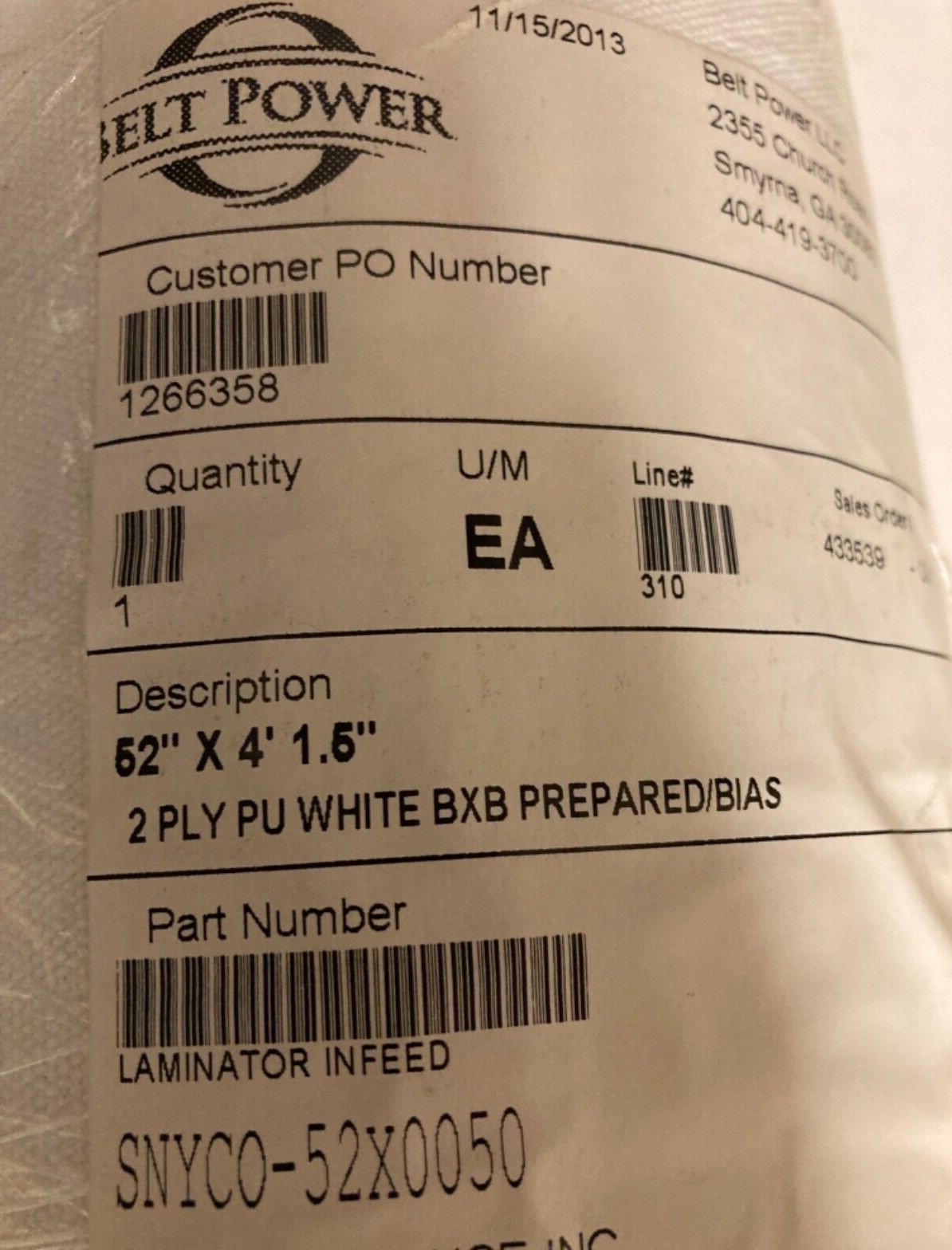 52″W x 4’1.5”L White Food Grade Conveyor Belt 2 PLY PU BXB Prepared on Bias