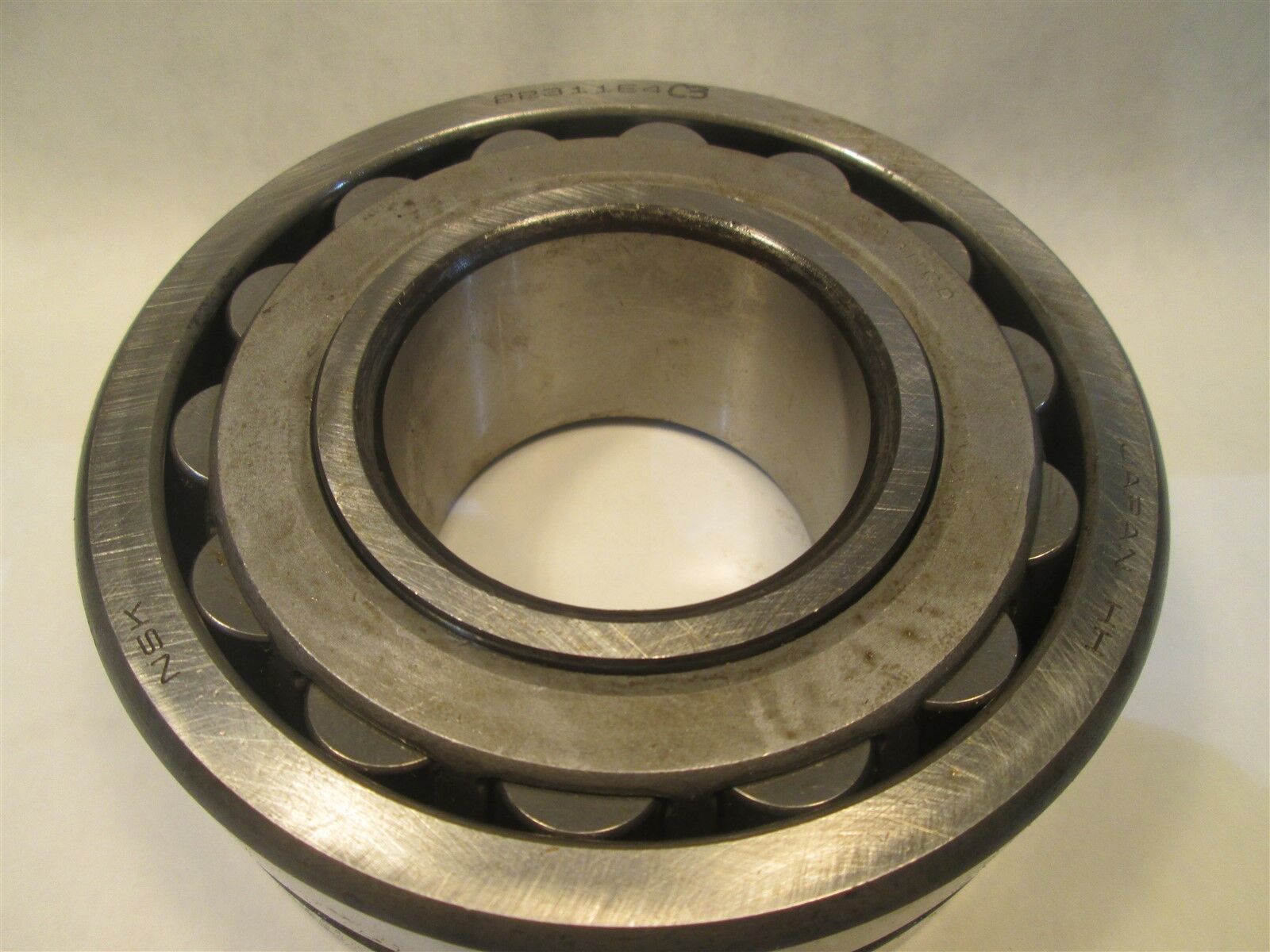 This is a NSK Spherical Roller Bearing 22311E4C3 as pictured. The bearing pictured is the bearing you will receive. We do not use stock pictures. Some spotting as pictured. Was wiped with oil and packed in new wax paper.