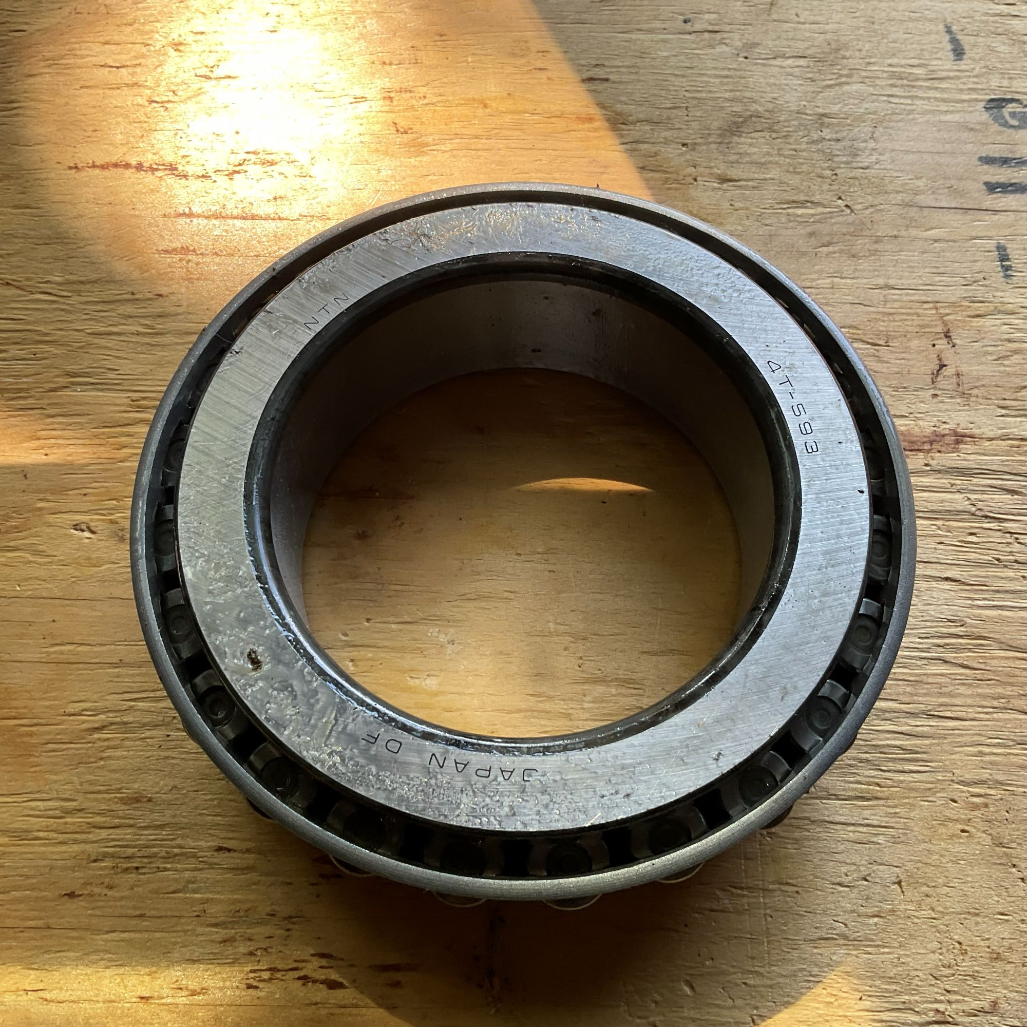 New Old Stock-Surplus- NTN 4T593 Tapered Roller Bearing Cone. This bearing is made in Japan. The bearing bore diameter is 3.5″.