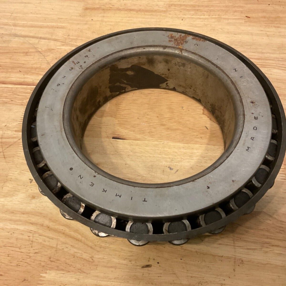 This is a new old stock Timken Tapered Roller Bearing 94649/94113 Cone Cup Assembly that is listed as used because of spots. We oiled the bearings and packed in plastic to prevent further spotting.  These bearings have never been in service we wiped off what was left of the original Timken packing paper and dried oil for pictures. These bearings came from a large transmission/scrap shop in Birmingham.